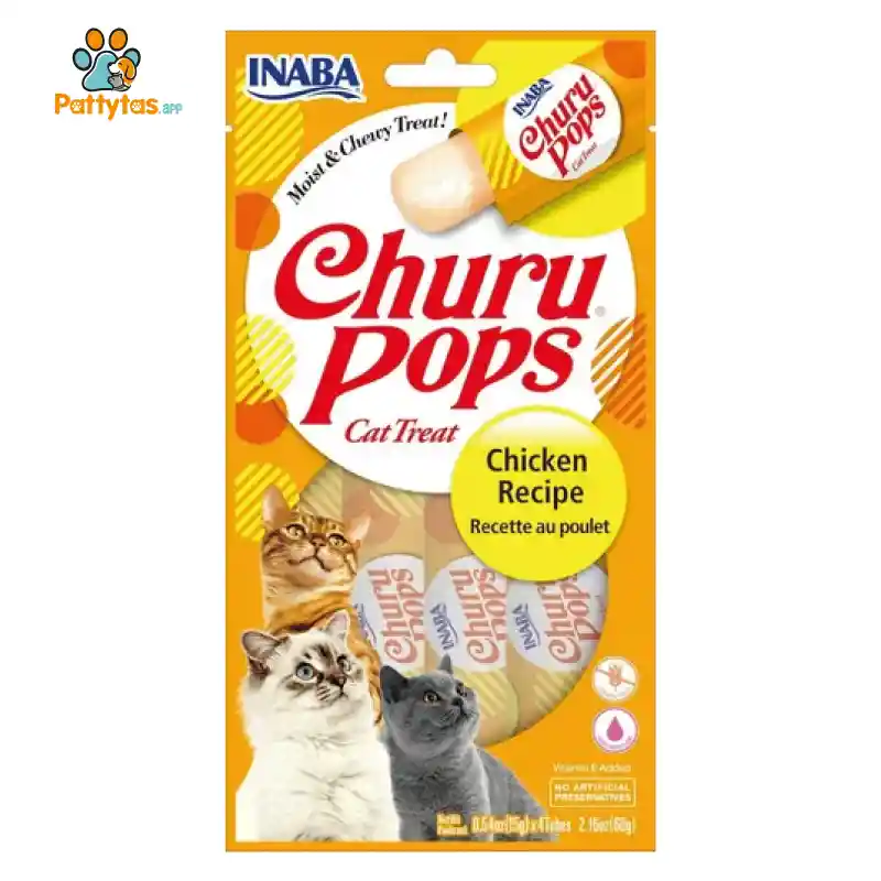 CAT SNACK CHURU POPS – 4 PIEZAS – POLLO ¡Estas golosinas jugosas y sabrosas para gatos están hechas con atún salvaje 100% puro y natural o pollo de granja! Disponible en tres deliciosas variedades, Churu® Pops tiene un alto contenido de humedad que los felinos necesitan para su salud. Simplemente abra un tubo y apriételo un poco para alimentar a mano estas golosinas sin granos ni conservantes. También puedes verterlos en un tazón o usarlos como una cubierta sabrosa en alimentos húmedos o secos 🐾