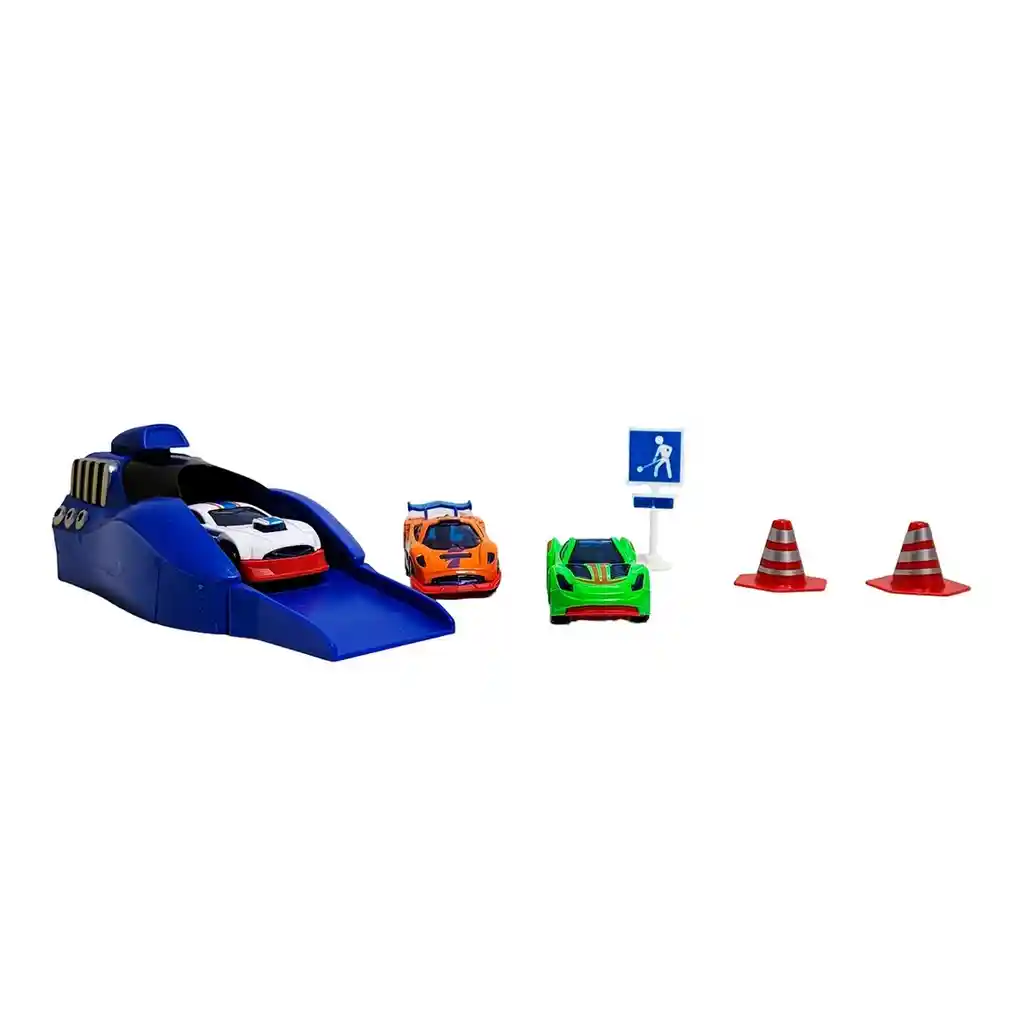 ¡Prepárate para la máxima velocidad con este increíble set de lanzamiento de autos de carrera! Coloca uno de los cuatro potentes autos en la rampa del lanzador futurista, presiona el botón y mira cómo sale disparado a toda velocidad hacia la línea de meta. Usa los conos y la señal de tráfico incluidos para diseñar tu propia pista de obstáculos o un circuito de alta competencia y desafía a tus amigos para ver quién logra el mejor tiempo. Este completo paquete, que incluye el lanzador, cuatro vehículos y accesorios, es todo lo que necesitas para desatar horas de diversión llena de adrenalina, fomentando el juego creativo y la sana competencia. Ficha Técnica: Material: Plástico ABS Dimensiones carro : 7 cm x 3 cm x 3 cm Apto para: + 3 Años Referencia: 1210-K6 Certificado de conformidad: CS-LCO-13233-2021S2/432 ** _Para defectos de fábrica o retractos: \_Por favor revise el producto apenas lo reciba y antes de usarlo. No aplican ley de retracto o defectos de fábrica luego de usar el producto. Se manejan máximo 5 días para reportar defectos de fábrica (por ejemplo, producto funciona mal, piezas faltantes, rotas, etc). Para hacer efectiva la devolución el producto debe devolverse con el empaque original, el cual debe estar en buen estado, incluir todos los documentos y las partes completas y sin daños.