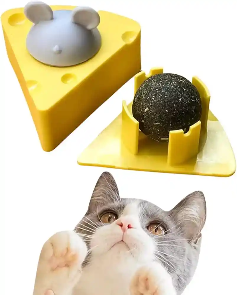Juguete de Catnip para gato en forma de queso, viene una unidad, incluye catnip y pegatina para pared