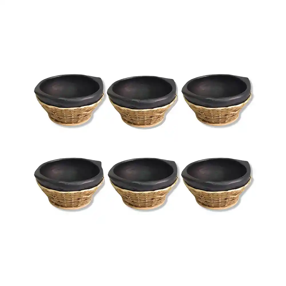 Cazuela De Barro Con Canasto Sancochera por 6 Unidades Ahora podrá preparar y servir un delicioso sancocho, frijolada, marisco, platos típicos Colombiano, ideales también para utilizar a fuego directo u hornos convencionales ya que aguanta hasta 280 grados de temperaturas, cazuela apta para contacto directo con alimentos, producto 100% artesanal y Colombiano. No espere más para agregar las cazuelas en su vajilla y servir los platos típicos de nuestro país. -Medidas: Alto: 10 cm Ancho total : 19 cm aproximado. Diámetro boca cazuela: 16 cm aproximado. Ancho base canasto: 12 cm aproximado. -Capacidad: 600 ml/ 20.3 oz aproximado. -Peso del articulo: 606 gramos. - Cantidad: 6 cazuelas, 6 canastos Nota: Producto totalmente artesanal, sus medidas pueden variar de 5 mm - 10 mm o aumentar, igual pasa en el color negro de la artesanía, en el proceso de ahumado puede variar su color Recomendaciones de uso: Se recomienda antes de su primer uso lavar con abundante agua y jabón, no es necesario hacer ningún proceso de curado. Otras Características: - Se puede utilizar en horno convencionales, microondas o estufas de gas y eléctricas. - Puede llevarlo directamente a la mesa para una presentación elegante. - Protege su salud y cuida del planeta: producto vegano, orgánico, libre de plomo, sostenible y sin lixiviación de contaminantes. - Color negro añadido en un proceso de ahumado expuesto a altas temperaturas de hasta 700 grados. - Las imperfecciones son la belleza de cada pieza. Pueda que cada pieza tenga imperfecciones ya que son elaboradas a mano. - Esta cazuela de arcilla está hecha a mano durante un proceso totalmente artesanal. - Las dimensiones pueden variar, igual que su color ya que es un producto elaborado a mano.