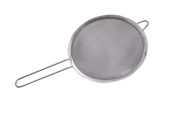 Colador de cocina, se usa como filtro o escurridor de alimentos. Se emplea cuando se quiere separar un alimento líquido de su sólido. forma semi-esférica para contener la mayor cantidad de mezcla posible. En el borde de el colador hay una especie de gancho para que se pueda sujetar en un recipiente como una cacerola u olla.