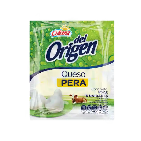 Queso Pera, es un tipo de queso fresco, semiduro, semigraso Ácido No madurado de pasta hilada. Presenta un sabor suave y ligeramente ácido, su textura es elástica (Semi - Blanda) lo que proporciona características propias de este tipo de quesos por su acidez.