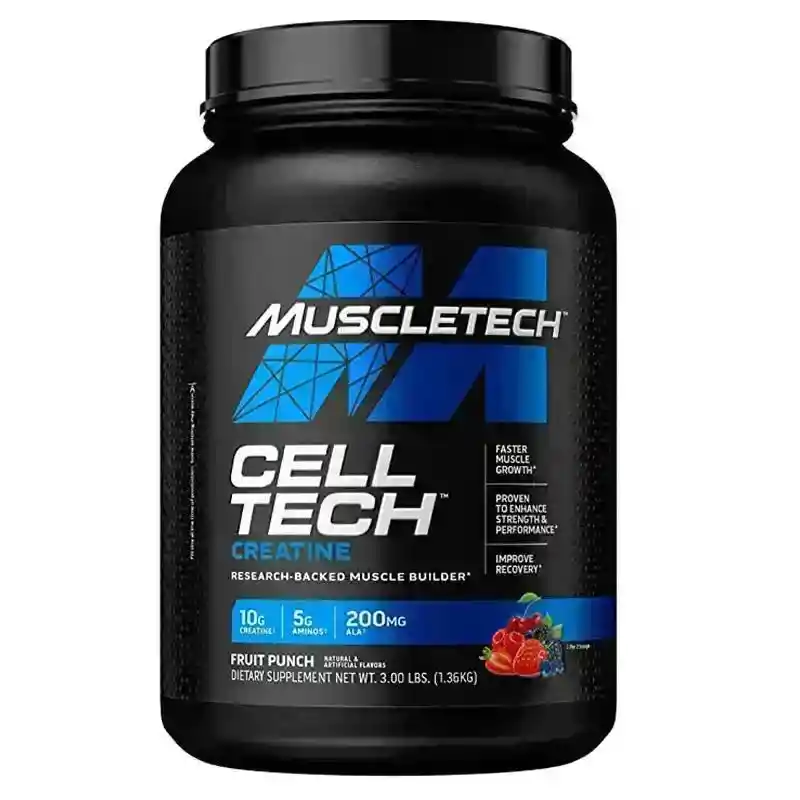 Celltech Muscletech es una fórmula de creatina de tercera generación diseñada científicamente que presenta una mezcla clínicamente comprobada de monohidrato de creatina y carbohidratos. El desarrollo muscular requiere más que solo entrenamiento; necesita el apoyo adecuado. ¿Qué contiene un servicio de esta creatina? 5 g de monohidrato de creatina. 38 g de carbohidratos. 5 g de aminoácidos. Presentación: en polvo de 3 lb (27 servicios) Servicio: 50 g Modo de uso: mezclar 1 servicio (1 cucharas medidoras) en 6-8 oz. de agua fría