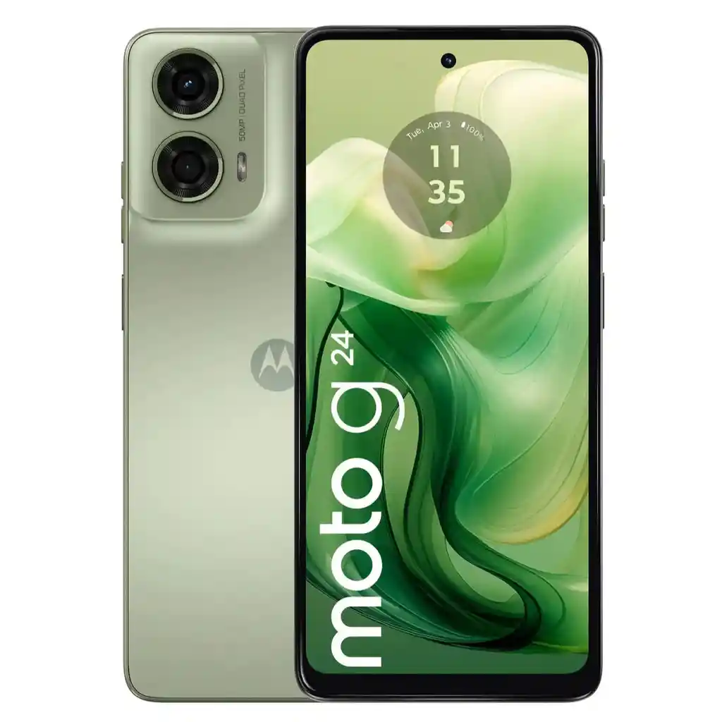 MOTOROLA MOTO G24 DISEÑO ELEGANTE Y DESEMPEÑO SUPERIOR Características Principales: - Equipo totalmente nuevo en caja cerrada. - Libre de fábrica para cualquier compañía. - Procesador: Helio G85 - GPU: Mali-G52 MC2 - Pantalla: IPS LCD 6.56" HD+ - Relación de aspecto: 20:9 - Resolución: 1612 x 720 - Tasa de refresco: 90Hz - Memoria RAM de 8GB - Cámara Trasera: 50MP + 2MP - Cámara Frontal: 8 MP - Sistema operativo: Android 14 - Nano SIM + Nano SIM o Micro SD (Hasta 1TB) - Wi-Fi, Bluetooth 5, GPS - 2G/3G/4G VoLTE - GPS, AGPS, GLONASS - Sensor de Huellas Digitales para desbloqueo lateral - Puerto carga Tipo C - Batería integrada de 5000 mAh - Carga rápida de 15W - Resistente a salpicaduras -Garantía: 12 meses con fabricante Contenido del paquete: Celular / Cargador 15W tipo EUROPEO (NO incluye adaptador) / Cable USB tipo C / Herramienta de extracción para la SIM / Guía del usuario / Garantía / Factura.