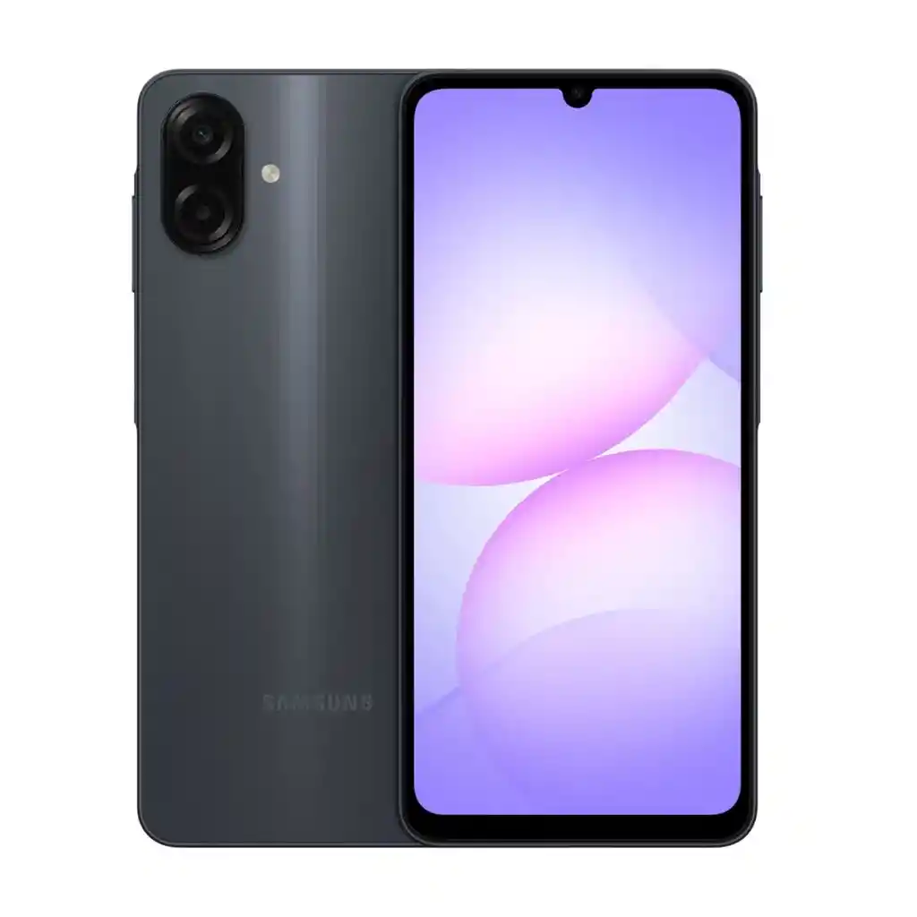 Bienvenidos a aldnet tienda virtual Celular Samsung Galaxy A07 4G 128 Gb 6 Ram Características principales: - procesador: Mediatek Helio G99 - sistema operativo: Android 15 - pantalla: 6,7” PLS LCD - resolución: 720 px x 1600 px - sensor huella: Si, lateral - altura: 16 cm - ancho: 7 cm - grosor: 7 mm -Dimensiones del producto empacado: 18 cm + 8,5 cm + 3 cm -Memoria expandible: Si, 1TB mediante Micro SD -Contenido del empaque: Celular, Cable de datos tipo c, llave sim, manual - Generación: 4G - memoria interna: 128 GB - memoria ram: 6 RAM - Cámara trasera: Dual 50mp + 2 mp - Cámara frontal: 8 Mp - carga rápida: Si, 25W -Tasa de refresco: 90 Hz -Procesador central: 2,2 GHz - wi-fi: Si - bluetooth: V5.3 - batería: 5000 mAh - resistencia al agua: No -garantía: 1 Año por defectos de fábrica directamente con la marca Gracias por comprar en aldnet tienda virtual