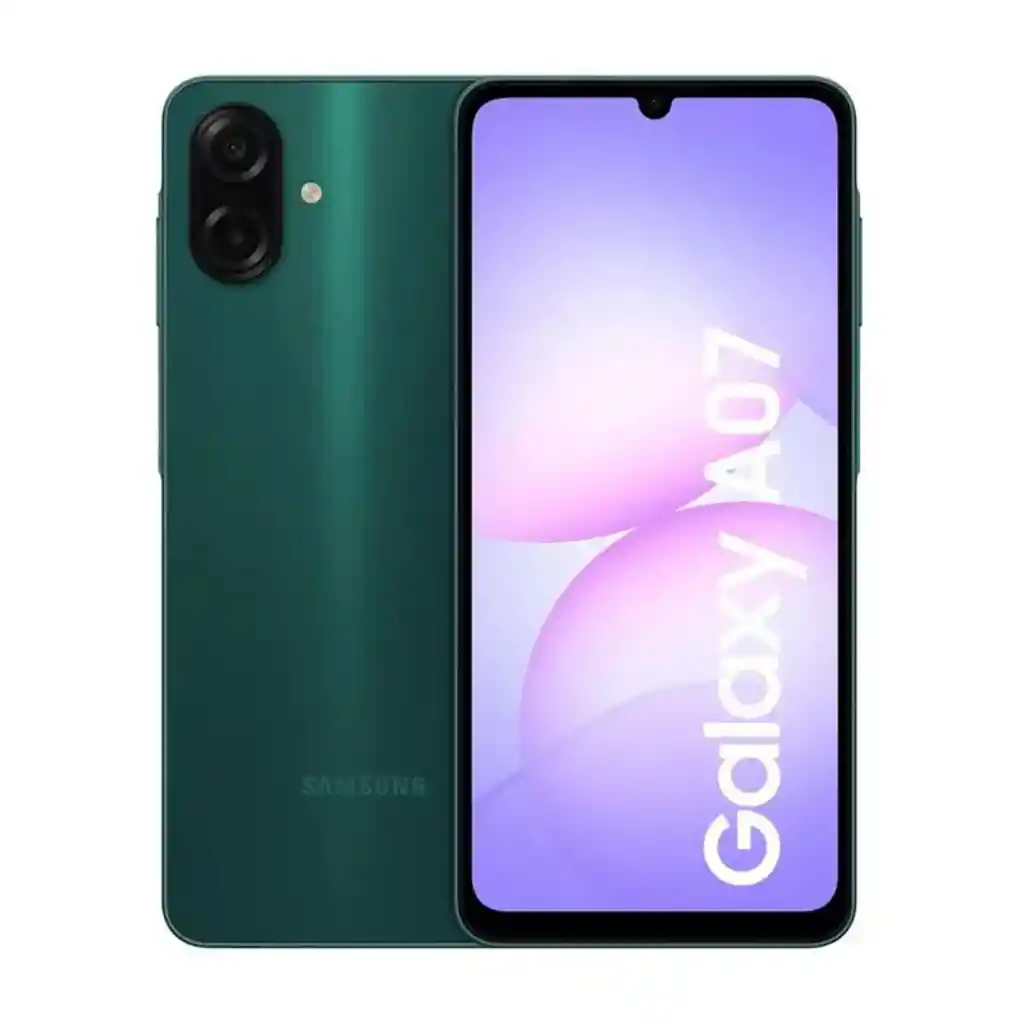 Samsung Galaxy A07 es un teléfono inteligente de la gama de entrada con batería de alta capacidad y pantalla grande. Está pensado para uso diario como redes sociales, mensajería, videos y navegación web. Tiene cámara principal de 50 MP, cámara frontal de 8 MP y resistencia básica al agua y polvo con certificación IP54. Usa Android con la interfaz One UI y tiene lector de huellas lateral. Especificaciones destacadas Modelo: SM-A075M/DS Sistema operativo: Android con One UI Pantalla: 6.7 pulgadas PLS LCD HD+ con 90 Hz Procesador: MediaTek Helio G99 Memoria RAM: 4 GB Almacenamiento interno: 64 GB ampliable con microSD Cámaras: 50 MP principal + 2 MP de profundidad; 8 MP frontal Batería: 5000 mAh con carga rápida Conectividad: 4G LTE, Wi-Fi, Bluetooth, USB-C, conector de auriculares Seguridad: Lector de huellas lateral Certificación: IP54 resistente al polvo y salpicaduras