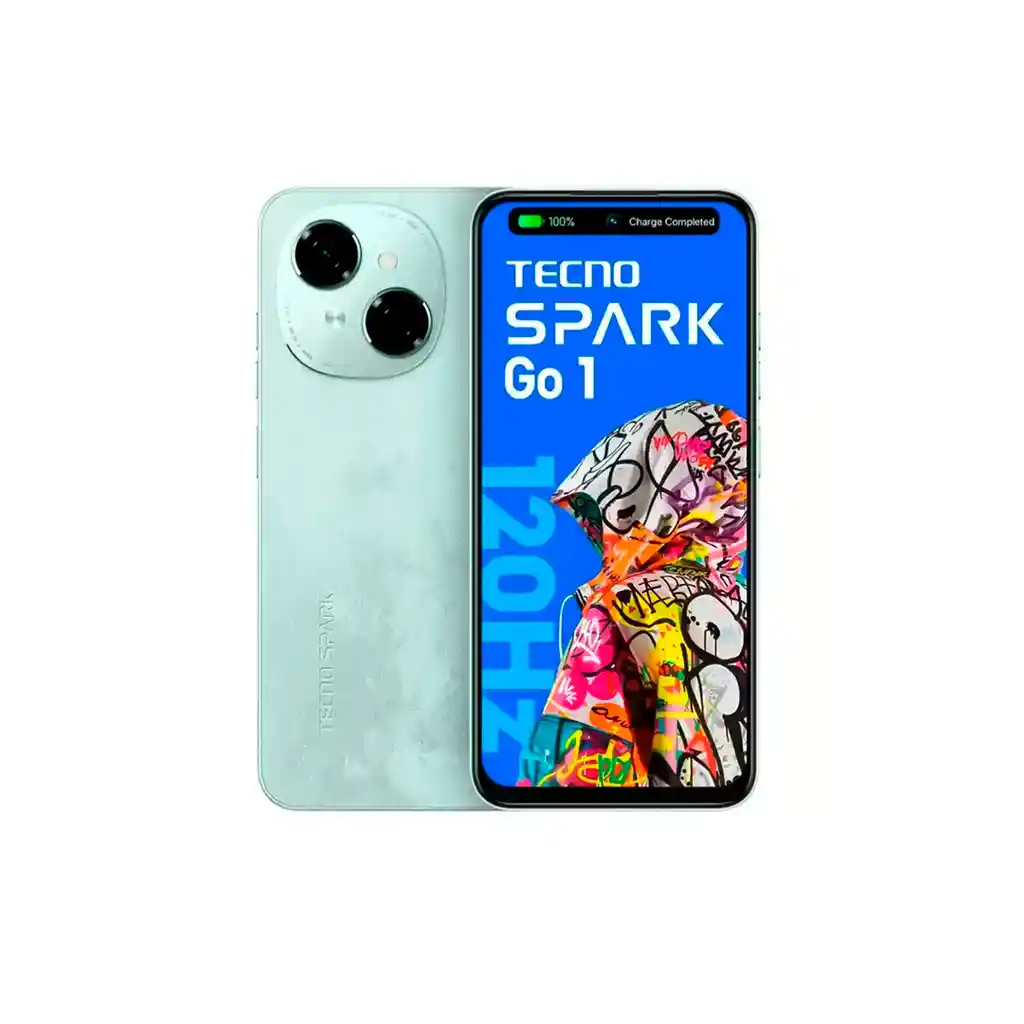 Celular Tecno Spark G0 1 color Blanco, memoria de 128GB de ROM y 4GB de RAM, cámara principal de 13MP y frontal de 8 MP, pantalla IPS de 6,7", procesador Unisoc Octa-core 1.8 GHz, Batería de 5000 mAh, Android 14