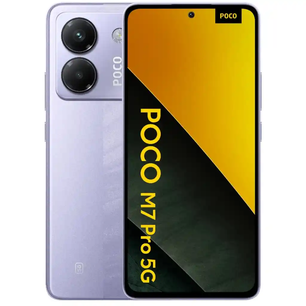 Poco M7 Pro 5G Ultrapoder sin límites Características Principales: - Equipo totalmente nuevo en caja. - Libre de fábrica para cualquier compañía. - Procesador: Dimensity 7025-Ultra (hasta 2.5 Ghz) - GPU IMG BXM-8-256 - Pantalla 6.67" AMOLED, HDR10+ - Tasa de refresco 120Hz - Resolución 2400*1080 - Gorilla Glass Glass 5, IP64 - Dolby Atmos - Conector Jack 3.5mm - Memoria Interna de 512 GB - Memoria RAM de 12 GB (LPDDR4 X + UFS 2.2) - Red 5G - Sensor de huellas en pantalla - Desbloqueo facial con AI - Sensor de proximidad - Sensor de luz ambiental - Emisor de infrarrojo - Cámara Trasera: 50 MP + 2 MP - Cámara Frontal: 20 mpx - Puerto carga Tipo C - Sistema operativo: Xiaomi HyperOS - Ranura nano-SIM + nano-SIM o Micro SD - Admite Bluetooth 5.3 - Batería integrada de 5110 mAh - Carga rápida a 45W - Garantía: 6 meses Contenido del paquete: Celular / Adaptador de corriente 45W TIPO EUROPEO (NO incluye adaptador) / Cable USB tipo C / Forro simple / Herramienta de extracción para la SIM / Guía del usuario / Garantía / Factura