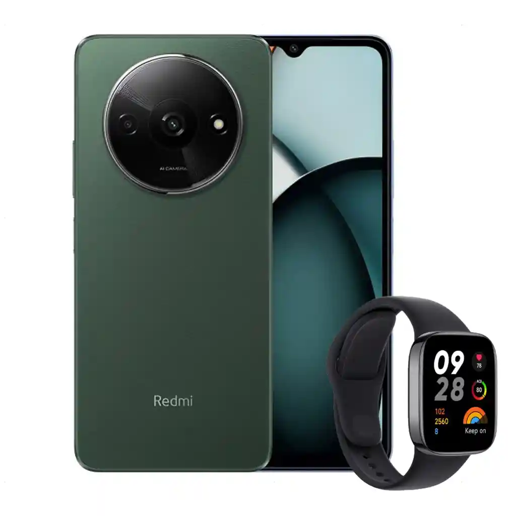 Celular Xiaomi Redmi A3, 64gb/3gb, Verde + Watch 3 Active Diseño innovador Increíble a simple vista El diseño circular de la cámara en el centro amplifica al máximo la belleza armoniosa del círculo, transmite un estilo grandioso y minimalista a simple vista e irradia un temperamento excepcional que captura la esencia de un diseño superior. Movimiento constante de luces y sombras Delicado y exquisito Con esta gran cámara, nos entregamos a la diversidad y añadimos texturas delicadas que ofrecen un brillo dinámico bajo diferentes luces y sombras para conseguir resultados más exquisitos. Sofisticación estética Diseño premium Es delicado al tacto y tiene una textura extraordinaria. La protección contra huellas dactilares te permite utilizarlo sin preocupaciones. Cuerpo supercompacto Más estilizado y moderno El diseño ultrafino, combinado con el impecable marco plano, le da un aspecto exquisito y elegante. Sujeta el teléfono con una mano para marcar tendencia y disfrutar de su ligereza. 8,3 mm *Los datos relativos a las dimensiones se han probado en los laboratorios internos de Xiaomi; los resultados reales pueden variar. Pantalla Dot Drop de 6,71" Tamaño impresionante Pantalla HD+ de 6,71" con atenuación de CC para una mayor protección ocular. La pantalla extraordinariamente grande ofrece un área de visualización más amplia que te sumergirá al instante en las películas y juegos. Alta frecuencia de actualización de 90 Hz Imágenes fluidas y delicadas Esta pantalla con una alta frecuencia de actualización ofrece una experiencia mucho más fluida que las pantallas de 60 Hz tradicionales, lo que se traduce en una navegación más sencilla por las redes sociales, aplicaciones de compras y páginas web. Sistema de cámara doble con IA Fotos excelentes en cualquier situación El motor de imagen inteligente y omnipotente produce fotografías de paisajes y retratos extraordinarias. El modo HDR permite captar más detalles al fotografiar a contraluz. Anillo de luz suave Igual de radiante durante la noche La cámara frontal no solo resalta al fotógrafo, sino que también cuenta con un anillo de luz suave que ilumina la cara de forma natural para que puedas destacar incluso en la oscuridad. Aumenta la calidad de tus creaciones Ahora puedes inmortalizar momentos artísticos con facilidad gracias a las diversas funciones de la cámara y la gran variedad de filtros cinematográficos clásicos. Doble método de desbloqueo Seguro y cómodo Puedes elegir entre el sensor de huella dactilar lateral o el desbloqueo facial por IA para desbloquear fácilmente el teléfono. Adecuado para más situaciones de desbloqueo, más seguro y más cómodo. Admite hasta 1 TB de almacenamiento ampliable Enorme espacio de almacenamiento No solo cuenta con el almacenamiento de 128 GB más alto de su clase, sino que también se puede ampliar el espacio de almacenamiento hasta 1 TB. Tiene espacio de sobra para todas tus películas y programas de televisión favoritos para que no te pierdas nada. Ampliación de memoria Funcionamiento sencillo Gracias a la tecnología de ampliación de RAM, el Redmi A3 puede ampliar su capacidad de hardware de 4 GB a 8 GB*, lo que permite un funcionamiento más fluido del sistema y que las aplicaciones se carguen más rápido. Batería de gran capacidad de 5000 mAh* Puerto USB tipo C Cuenta con un puerto USB tipo C que admite carga de 10 W*. La batería de gran capacidad de 5000 mAh garantiza un día completo de autonomía, por lo que no tendrás que preocuparte por la duración de la batería. Procesador de ocho núcleos Se acabaron los retrasos El potente procesador de ocho núcleos con una frecuencia de CPU máxima de 2,2 GHz ofrece un rendimiento más equilibrado, menos retrasos y más diversión. Android 14 Las 2 actualizaciones principales de Android y los 3 años de actualizaciones de parches de seguridad ayudan a tu sistema móvil a resistir el paso del tiempo. ESPECIFICACIONES Procesador: MediaTek Helio G36 Proceso de 12 nm Ocho núcleos CPU: hasta 2,2 GHz Almacenamiento y RAM: 3 GB + 64 GB - 4 GB + 128 GB LPDDR4X + eMMC 5.1 Permite ampliar el almacenamiento hasta 1 TB Admite ampliación de memoria: hasta 8 GB Las configuraciones disponibles pueden variar según la región. El almacenamiento y la RAM disponibles son inferiores a la memoria total debido al almacenamiento del sistema operativo y el software preinstalado en el dispositivo. La compatibilidad real con tarjetas de memoria puede variar de un fabricante a otro. Los 4 GB de RAM ampliada se basan en la versión de 4 GB de RAM. La ampliación de memoria solo está disponible cuando hay suficiente espacio de almacenamiento en el dispositivo. La ampliación de la capacidad de almacenamiento de RAM varía en función del modelo. Dimensiones: Altura: 168,4 mm Anchura: 76,3 mm Grosor: 8,3 mm Datos obtenidos de los laboratorios internos de Xiaomi. Los métodos de medición del sector pueden variar y, por tanto, es posible que los resultados reales difieran. Pantalla: Pantalla Dot Drop de 6,71" 1650 x 720, 268 ppp Relación de contraste: 1500:1 Profundidad de color: 8 bits Brillo: 500 nits Frecuencia de actualización: hasta 90 Hz La frecuencia de actualización se puede ajustar hasta 90 Hz para aplicaciones compatibles. Atenuación de CCRelación de pantalla a cuerpo: 90 % (AA/CG) Datos obtenidos de los laboratorios internos de Xiaomi. Los resultados reales pueden variar. Compatible con luz nocturna Cámara trasera: Cámara principal de 8 MP Lente de 4 elementos f/2,0 Objetivo auxiliar El objetivo auxiliar hace referencia al objetivo QVGA con una matriz de píxeles activa de 248 x 328. Grabación de vídeo de la cámara trasera 1080P 1920 x 1080 30 fps 720P 1280 x 720 30 fps Cámara frontal: Cámara frontal de 5 MP f/2,2 Grabación de vídeo de la cámara frontal 1080P 1920 x 1080 30 fps 720P 1280 x 720 30 fps Batería y carga: Batería de 5000 mAh (típ.) Admite carga de 10 W El adaptador de corriente se vende p