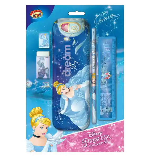 El Set de Escritura Con Diseño de Cenicienta es Perfecto Para Que tu Hija Tome Sus Mejores Apuntes, ya Que Contiene Todo lo Que Necesita. Incluye 1 Lápiz, 1 Tajador, 1 Borrador, 1 Regla y 1 Cartuchera Metálica ¡Anímate y Adquiérelo Ahora! Recomendado Para Niñas de 3 Años en Adelante.
