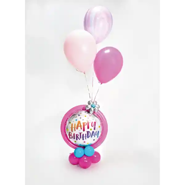 Globo metalizado y tres globos en helio latex colores