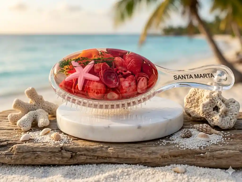 Cepillo acuario, con conchas de mar, recuerdo de Santa Marta