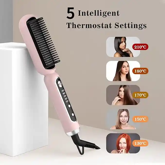 Cuidado del cabello con tecnología de iones negativos: este cepillo alisador de pelo con nuevo generador iónico negativo integrado, el alisador de cabello libera ricos iones negativos que ayudan a reducir las puntas abiertas y los nudos y reparar las escamas del cabello. 5 engranajes de temperatura para varios peinados: el cepillo alisador de pelo de iones negativos con 5 modos de ajuste de calor puede ser adecuado para tu tipo de cabello específico. 260°F/(266.0 °F)Cabello suave; 300°F-340°F/(302.0 °F--274.0 °F)Ondas permanentes y cabello dañado por el color; 360°F /(356.0 °F) Cabello medio y ligeramente rizado; 410°F/(410.0 °F) Cabello grueso y duro. Precalienta durante unos 30 segundos después de encender, espera a que el peine se caliente y luego úsalo. Material de cerámica de alta calidad: el peine térmico de cerámica beneficia al cabello al bloquear la humedad y transformar el encrespamiento, ayuda a evitar tirar o dañar el cabello mientras se peina, deja el cabello más elegante, saludable y antiestático. Dile adiós a las quemaduras: el alisador de cabello con peine caliente antiquemaduras asegurará que tu cuero cabelludo esté a salvo de su alta temperatura y un marco de plástico ignífugo te protege desde todos los ángulos. Si 30 minutos no utilices el alisador de pelo, se apagará automáticamente para garantizar la seguridad para ti y tu familia.