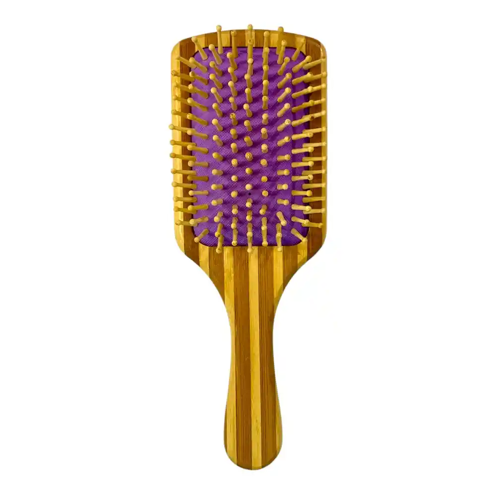 Cepillo Bambú para Cabello Incluye: 1 cepillo Diseño: Rectangular Color: Morado Características: - Diseñado para desenredar sin maltratar tu cabello. - Las cerdas de punta redonda evitan que se abran las puntas, además estimulan el folículo piloso que ayuda a el crecimiento del cabello. - Cuenta con almohadilla de silicón, orificio de ventilación y mango cómodo. *Las imágenes de los productos pueden variar ligeramente en color respecto al producto real debido a la iluminación y las configuraciones de pantalla en diferentes dispositivos.