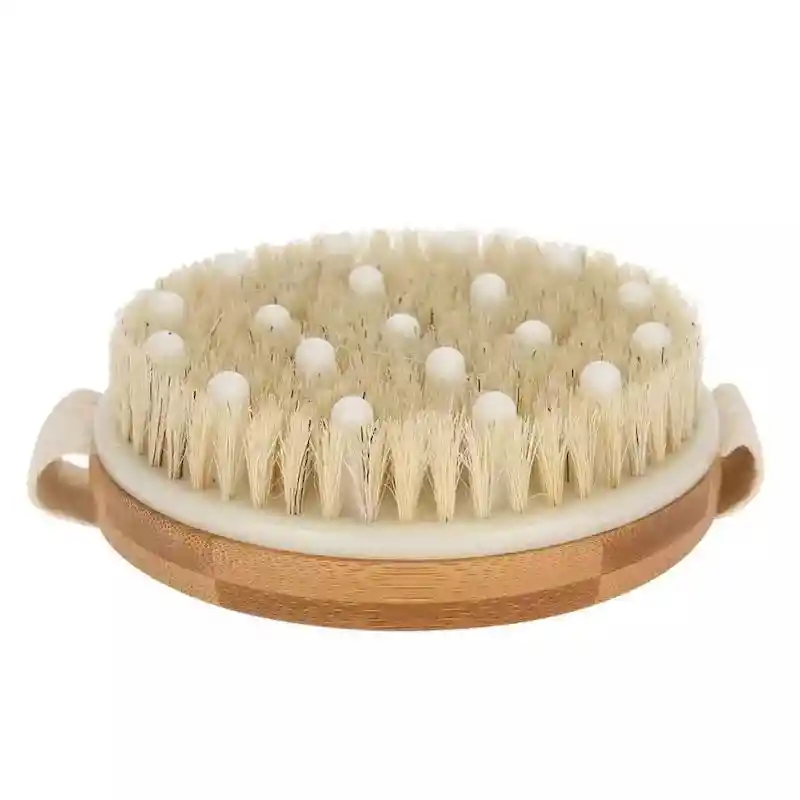 Fabricado con Bambú Cerdas para exfoliar y limpiar tu piel. Puntas de Goma para masajear. Elimina células muertas de la piel, estimula el sistema linfático y la circulación Secar bien después de usar. MEDIDAS: 10,5 x 3,5