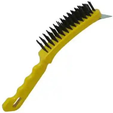 Imagen de referencia el color del producto puede variar, se envía según disponibilidad de inventario. Cerdas fabricadas con alambre de acero al carbono de alta resistencia Mango fabricado en polipropileno Espátula de acero para facilitar la limpieza