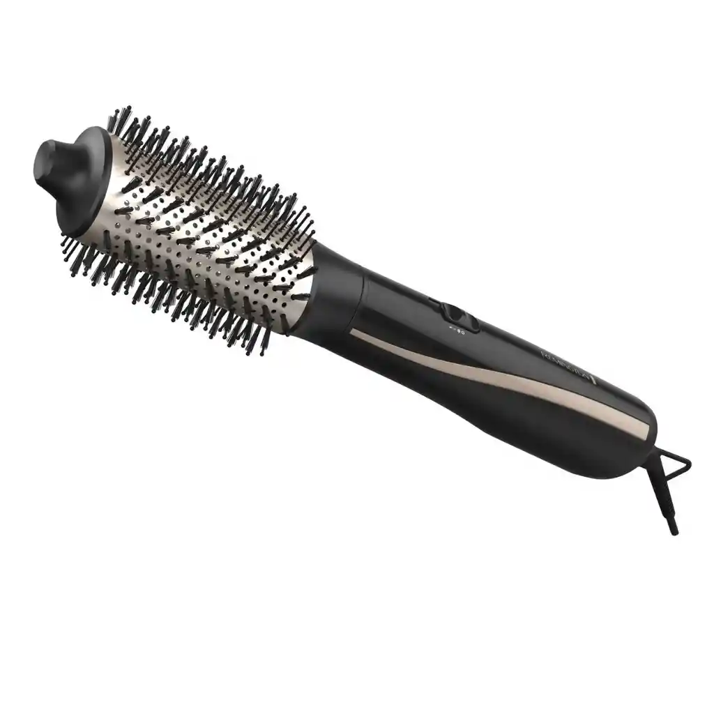 Ahora hay una manera segura de estilizar tu cabello húmedo con el cepillo de aire caliente Wet2Style™. Este cepillo cuenta con un barril con ventilación que combina un poderoso flujo de aire con calor optimizado para secar y estilizar en un solo paso. Acondicionamiento iónico para menos frizz: 90% más de iones** **vs. secador estándar de Remington • Perfecto para cabello húmedo y seco • Barril ovalado de 70 mm con cerdas mixtas para mayor versatilidad y resultados suaves de salón • 1200 W • 2 niveles de temperatura • 2 niveles de velocidad • Ráfaga de aire frío • Cabezal removible • Cable giratorio • Garantía de 3 años