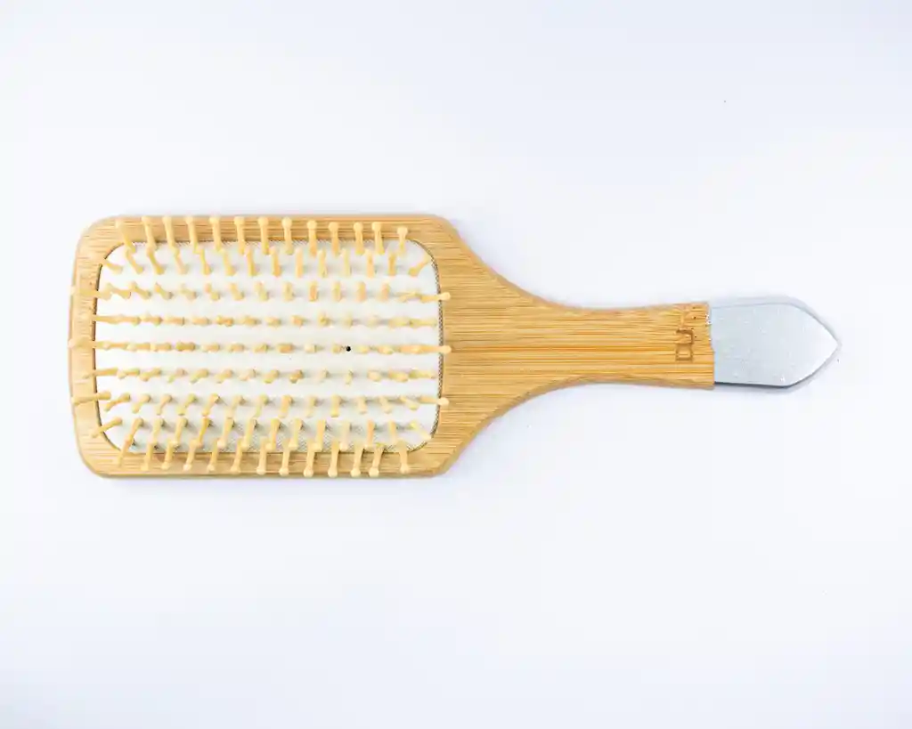 Cepillo de Bambú con cerdas de madera, para brindar la suavidad y confort en tu peinado diario, estimula la circulación sanguínea y el folículo piloso, ayudando al crecimiento del cabello, es un cepillo con cuerpo y cerdas de Bambú 100% natural.
