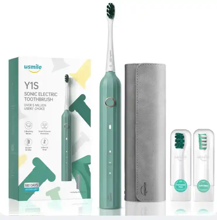 Cepillo de Dientes Electrónico Sónico de Referencia Y1S Color Verde Menta. Diseño elegante, con mango higiénico a la humedad. Batería de 6 meses de carga, 3 modos de limpieza profunda e indicador de carga de batería. Viene con maletín portátil, 2 repuestos en cerdas tipo Soft DuPont y Cable USB Tipo C para su carga.