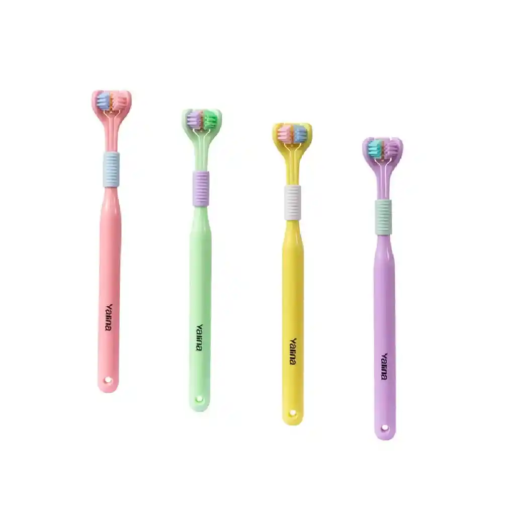 【Cepillo de dientes de tres caras】El nuevo cabezal de cepillo en forma de V puede cubrir diferentes lados de los dientes y envolver completamente los dientes. La inclinación científica de 45 grados permite que el cepillo de dientes limpie a fondo los residuos de alimentos en los espacios entre los dientes y las encías, reduzca el riesgo de caries y proteja la salud de los dientes. Estos cepillos de dientes tienen 3 cabezales de cepillo que pueden cubrir diferentes lados de tus dientes, ahorrando fácilmente tiempo limpiando tus dientes y manteniendo tus dientes saludables. Material: PP+PBT Color: Amarillo, Purpura, Verde, Rosado Tu compra incluye 1 CEPILLO DE DIENTES TRES CARAS