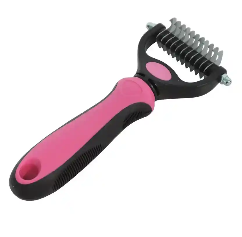 Funciona principalmente para el pelo anudado de las mascotas de pelo largo. El diente del peine4 está equipado con un borde de metal que puede cortar el cabello anudado. Uso: Peina en la dirección en que crece el pelo de tu mascota. Para evitar cortar demasiado cabello, no lo peines hacia atrás. Recuerda peinas el menos una vez a la semana o dos semanas y con ello será suficiente. Sostenga el cabello anudado y peine suavemente. Cuando se encuentre con cabello endurecido, para evitar arrancar la pe4lusa, presione la raíz del cabello y luego peine. Evitar usar fuerza excesiva. La pelusa es fácil de romper cuando se encuentra con el filo. Use fuerza medida al peinar. Precauciones: Solo para uso de animales domésticos, evite el uso en mascotas con piel sensible. Color sujeto a disponibilidad.