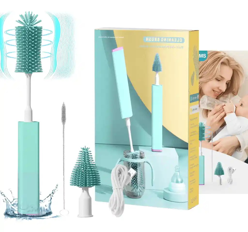 Mantén los biberones y accesorios de tu bebé siempre impecables con el Cepillo Eléctrico Multifuncional para Teteros. Su motor eléctrico y cabezales de silicona intercambiables permiten una limpieza profunda, rápida y sin esfuerzo, incluso en recipientes de boca estrecha o con formas difíciles. Ideal para garantizar higiene, seguridad y practicidad en el cuidado de tu pequeño. 🔹 Características Motor eléctrico que elimina la necesidad de esfuerzo manual. Cabezales de silicona flexibles, seguros y fáciles de esterilizar. Diseño ergonómico, ligero y resistente al agua (IPX7). Sistema recargable por USB con autonomía de 60 – 90 minutos. Rotación uniforme de 200 – 300 rpm para limpiar a fondo sin dañar los recipientes. 🔹 Beneficios Higiene total: elimina residuos en zonas de difícil acceso. Ahorra tiempo y esfuerzo en la limpieza diaria. Seguro para bebés: materiales libres de BPA y grado alimenticio. Versátil: apto para teteros, vasos, termos y botellas deportivas. Durable: cabezales de silicona resistentes al desgaste y reutilizables. 🔹 Contenido del set 1 cepillo eléctrico recargable. 2 cabezales intercambiables: cilíndrico y cónico. 1 cable USB de carga. Manual de uso. 🔹 Modo de uso Coloca el cabezal adecuado en el cuerpo del cepillo. Humedece el cepillo y aplica jabón líquido. Enciéndelo y limpia el interior del tetero o accesorio. Enjuaga con agua limpia y deja secar los cabezales.