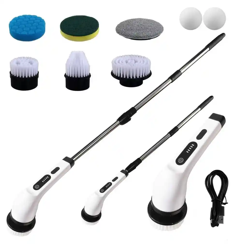 Optimiza tu rutina de limpieza con el Cepillo Limpiador Eléctrico 7 en 1 con Mango Extensible, una herramienta multifuncional y de alta potencia que hará que las tareas del hogar sean más fáciles, rápidas y eficientes. Diseñado para ofrecer versatilidad, comodidad y un rendimiento superior, este cepillo cuenta con un potente motor de 25W y dos velocidades de rotación (300 y 400 RPM), ideal para eliminar manchas difíciles en cocinas, baños, suelos, cristales y más. Gracias a su batería de 2500 mAh con carga rápida tipo C y una autonomía de hasta 90 minutos, podrás limpiar toda tu casa sin interrupciones. Su mango telescópico ajustable de 12 a 54 pulgadas permite alcanzar zonas de difícil acceso sin necesidad de agacharse o forzar la espalda. Incluye 7 cabezales de cepillo intercambiables para adaptarse a diversas superficies y necesidades. Fabricado con materiales resistentes al agua (grado IPX5) y cerdas duraderas que no rayan, este cepillo está diseñado para durar.