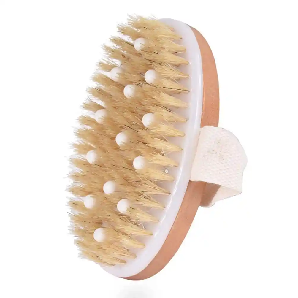 Cepillo Exfoliante de Cerdas Naturales: Eleva Tu Rutina de Cuidado Corporal a un Nivel Superior Cuida tu piel como nunca antes con nuestro Cepillo Exfoliante de Cerdas Naturales. Diseñado para brindarte una experiencia de cuidado corporal de lujo, este cepillo ofrece una amplia gama de beneficios para tu piel, ¡y lucirás y te sentirás rejuvenecido! Características Resaltantes: Transforma Tu Piel: Este cepillo es ideal para cepillar en seco y realizar un masaje linfático. No solo exfolia suavemente, sino que también ayuda a reducir la apariencia de la celulitis, estrías y pelos encarnados, brindándote una piel visiblemente más suave y tonificada. Una Experiencia de Spa en Casa: Con cerdas naturales, este cepillo proporciona un masaje suave que ayuda a destapar los poros, eliminar las cutículas y la piel muerta, todo en la comodidad de tu hogar. Mejora la Circulación Sanguínea: La acción exfoliante no solo deja tu piel suave, sino que también mejora la circulación sanguínea. Esto ayuda a acelerar la producción de colágeno y a eliminar los poros obstruidos, dejando tu piel radiante y saludable. Relajación Diaria: Incorpora un suave masaje en seco antes de cada ducha para obtener todos estos beneficios. No solo mejorará la salud de tu piel, sino que también te brindará un momento relajante y revitalizante en tu rutina diaria. Un Poco de Lujo Cotidiano: Haz de tu cuidado corporal una experiencia especial. Nuestro Cepillo Exfoliante de Cerdas Naturales es una inversión en tu piel que te ayudará a lucir y sentirte mejor cada día. ¡Regálate un poco de lujo cotidiano y observa cómo tu piel se transforma!