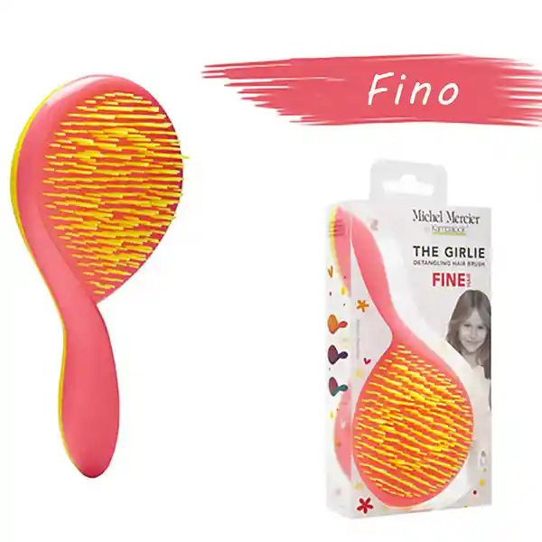 Cepillo kampalook Girlie Cabello fino- Cerdas muy flexibles Diseñado científicamente para desenredar su cabello sin dolor y mantenerlo sano y brillante. Gracias a sus cientos de cerdas innovadoras, se reduce la fuerza y la presión ejercidas sobre el cabello mientras se cepilla. ¡Todo lo que una niña puede soñar! Con la exclusiva tecnología patentada de Michel Mercier en formato Girlie, su amada niña disfrutará de una experiencia de cepillado agradable e indolora. El mango especial se adapta a la mano de una niña de 3 años o más, lo que fomenta el uso independiente y el juego de rol. • Agarre especial para mayores de 3 años. • Desenreda suavemente los nudos • Cepillado sin dolor