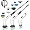 Fregadora Eléctrica Giratoria con 9 Accesorios de Limpieza Profunda sin Esfuerzo Limpieza potente y silenciosa: Gracias a su motor mejorado de 25W, esta fregadora eléctrica ofrece un rendimiento constante incluso bajo presión. Cuenta con dos velocidades ajustables: 400 RPM para una limpieza diaria suave y 480 RPM para eliminar suciedad difícil. Todo con un nivel de ruido inferior a 50 dB, ideal para un uso cómodo y sin molestias. Versatilidad total para cada superficie: Incluye 9 cabezales intercambiables diseñados para diferentes tareas: cepillo redondo para bañeras e inodoros, cepillo plano para suelos y juntas, cepillo angular para rincones difíciles, esponja para vidrios y más. Perfecto para explorar múltiples usos en toda tu casa. Cerdas duraderas e impermeables (IPX7): Fabricadas en material PP resistente, las cerdas limpian eficazmente sin dañar las superficies. El diseño sellado del cabezal permite enjuagarlo directamente bajo el grifo. Nota: no sumergir completamente el dispositivo en agua. Mango extensible y peso ligero: Su mango telescópico de acero inoxidable se ajusta de 61 a 120 cm Aproximadamente, permitiendo alcanzar zonas altas o rincones sin agacharse ni arrodillarse. Con solo 450 g de peso, es fácil de manejar incluso para personas mayores o niños. Batería recargable de larga duración: Disfruta de una limpieza ininterrumpida de 30 a 50 minutos gracias a su batería de 2000 mAh, con carga rápida en solo 3,5 horas mediante cable USB. Contenido del paquete: 1 fregadora eléctrica giratoria + cabezales de cepillo intercambiables.
