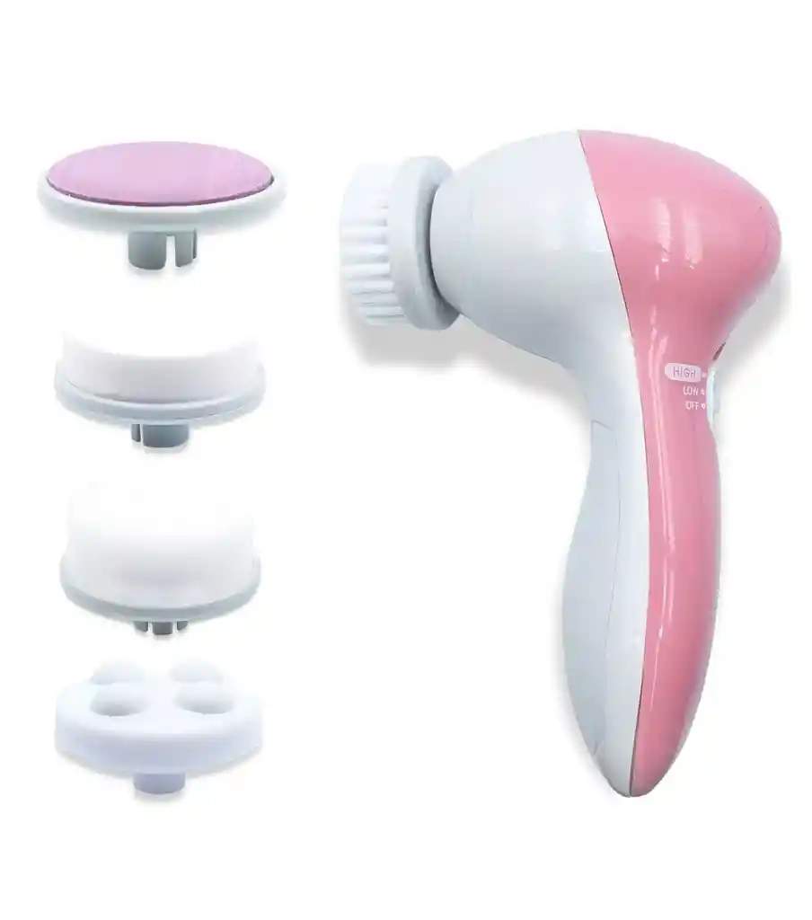 El cepillo facial eléctrico de masaje exfoliante rosa portátil 5/1 te permite cuidar tu piel desde la comodidad de tu hogar. Este dispositivo combate todos los signos del envejecimiento. Cuenta con 5 accesorios que proporcionan diversas funciones, se cambian fácilmente mediante su sistema de fijación y se pueden lavar para mantener la higiene del producto. Este dispositivo masajea y limpia la piel suavemente con la ayuda de sus cerdas ultrasuaves, dejando la piel fresca y limpia. Es adecuado para uso profesional o doméstico. Es práctico, resistente y fácil de usar. Contiene: - 1 dispositivo masajeador - 5 accesorios - 1 manual de instrucciones Funciona con 2 pilas AA. Las pilas no están incluidas con el producto.