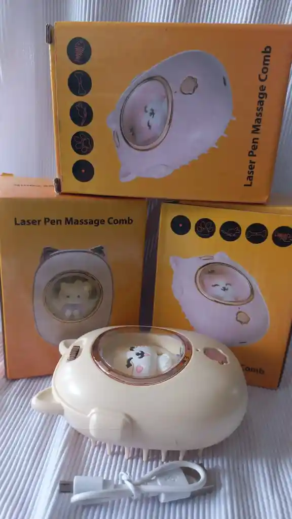 cepillo para masaje y retirar pelo muerto y enrredos, con 5 diseños láser de entrentención , incluye cable para recargar