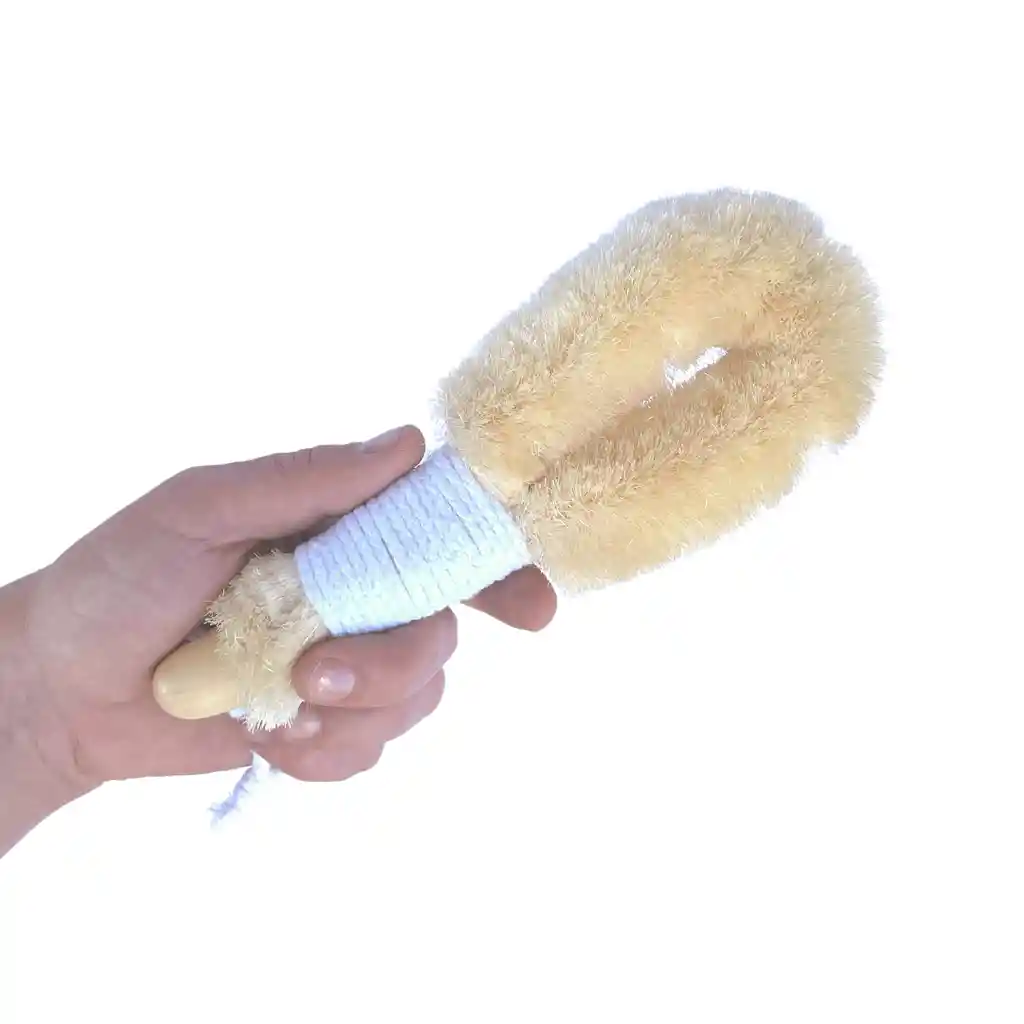 Cepillo 100% vegetal y biodegradable de cerdas suaves, puede ser usado para cepillado en seco dry brush o para el hogar. Fabricado con cerdas vegetales libres de maltrato y explotación animal. Correa de algodón para sujetarlo con la mano y para colgarlo.