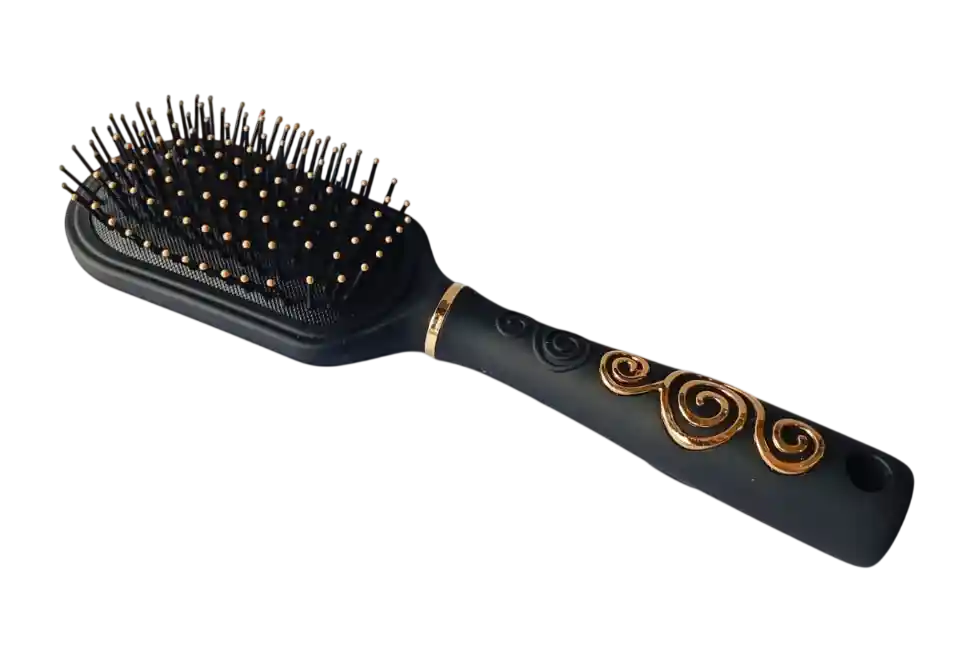 El cepillo para cabello negro/dorado es la combinación perfecta de estilo y funcionalidad. Con un diseño elegante que fusiona el negro con detalles dorados, este cepillo no solo es una herramienta de belleza, sino también un accesorio de lujo para tu rutina diaria. Sus cerdas de alta calidad desenredan el cabello de manera suave y eficiente, sin causar daño ni tirones. El mango ergonómico ofrece un agarre cómodo y seguro, mientras que su durabilidad asegura que lo disfrutes durante mucho tiempo. Ideal para todo tipo de cabello, este cepillo te ayudará a lograr un peinado suave, brillante y lleno de vida. ¡Hazlo tuyo y lleva el cuidado de tu cabello a otro nivel!