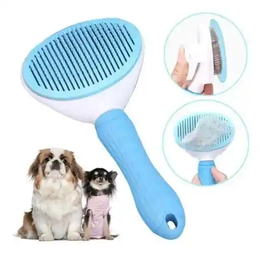 Cepillo para Mascota Con Botón para Quitar Pelusa El cepillo perfecto para mascotas pelo suelto fácil de quitar, adecuado para gatos y perros, no solo para mantener a las mascotas limpias, sino también para mantener el ambiente del hogar limpio e higiénico. Limpieza con un solo toque: simplemente presione el botón de limpieza para quitar las cerdas y límpielas, y nuestros cepillos para perros se pueden limpiar para su almacenamiento. Diseño razonable: diseño ergonómico antideslizante de silicona, agarre cómodo, fácil de controlar. El cepillo con cuentas masajea la piel de la mascota para evitar arañazos. El diseño de flexión de 60 grados de la aguja de acero inoxidable tiene un cierto grado de flexibilidad, lo que es beneficioso para prevenir enfermedades de la piel y aumentar la circulación sanguínea. Disponible en color:Gris, Azul y Rosado