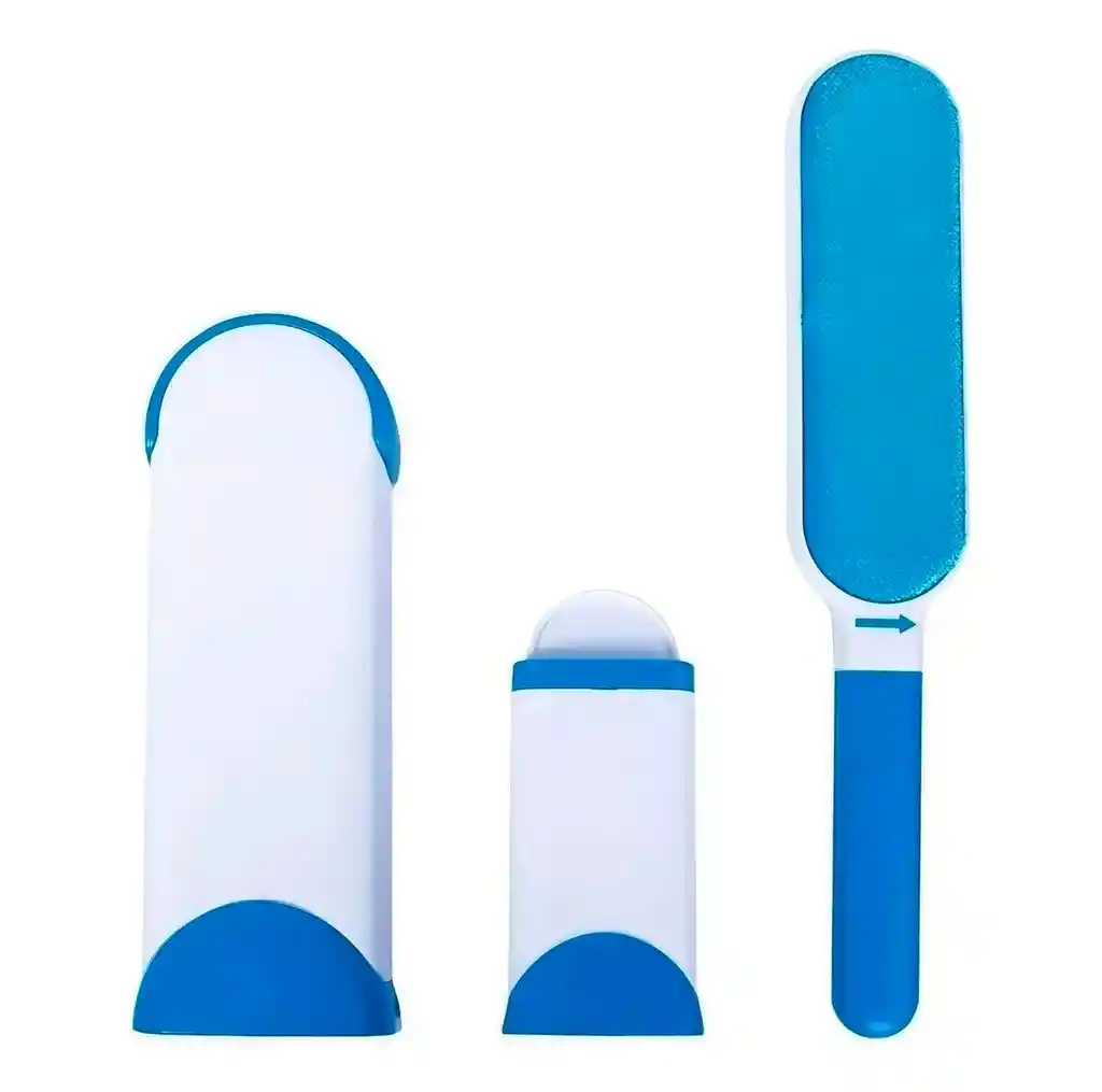 Este innovador cepillo removedor de pelos y pelusas es la solución definitiva para mantener tu hogar impecable de forma rápida, ecológica y económica. Gracias a su avanzada tecnología de microcerdas de doble cara, atrapa eficazmente el pelo de perros y gatos de cualquier superficie textil como sillones, ropa, alfombras y asientos de auto sin necesidad de repuestos adhesivos ni baterías. Su sistema de base autolimpiante permite que, con solo introducir y retirar el cepillo, este quede como nuevo al instante, almacenando los residuos en un compartimento inferior de fácil vaciado. El kit incluye una unidad de tamaño estándar para el hogar y una versión compacta de viaje, garantizando que siempre tengas a mano la herramienta perfecta para lucir prendas y muebles libres de rastro animal. Ficha Técnica: Producto: Cepillo Quita Pelos con Base Autolimpiante Material: Plástico ABS de alto impacto y microfibras de terciopelo Color: Blanco con detalles en azul Tipo de funcionamiento: Manual (No requiere voltaje ni baterías) Uso: Reutilizable de doble cara Superficies recomendadas: Telas, sofás, mantas, ropa, tapicería de autos Largo del cepillo grande: 31 cm Ancho del cepillo grande: 5.7 cm Largo de la base grande: 21.5 cm Ancho de la base grande: 7.3 cm Largo del cepillo de viaje: 11.4 cm (extendido 21.6 cm) Ancho del cepillo de viaje: 5.7 cm Peso total del paquete: 350 gramos aproximadamente Términos de garantía: Para defectos de fábrica o retractos: Por favor revise el producto apenas lo reciba y antes de usarlo. No aplican ley de retracto o defectos de fábrica luego de usar el producto. Se manejan máximo 5 días para reportar defectos de fábrica (por ejemplo, producto funciona mal, piezas faltantes, rotas, etc). Para hacer efectiva la devolución el producto debe devolverse con el empaque original, el cual debe estar en buen estado, incluir todos los documentos y las partes completas y sin daños.