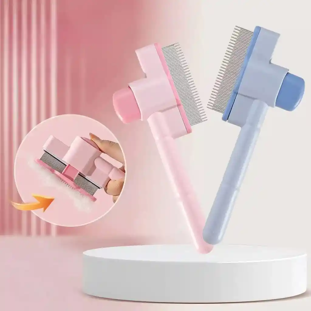 Peine 2 en 1 de autolimpieza con un botón: este peine de deslanador de mascotas elimina convenientemente el pelo de tu mascota, y después de peinarlo, simplemente presiona el botón ergonómico en el mango para retraer los dientes y recuperar el cabello en segundos sin ensuciarlo. En comparación con los cepillos tradicionales, este peine para mascotas elimina rápidamente, suaviza y peina el pelaje de tu mascota, simplificando el proceso de aseo, especialmente durante los tiempos pico de desprendimiento.