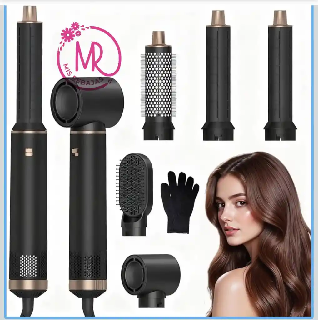 Incluye: secador potente con 5 cabezales intercambiables para crear diferentes peinados y guante de protección. Se puede usar en cabello húmedo o seco. Con 3 niveles de temperatura.