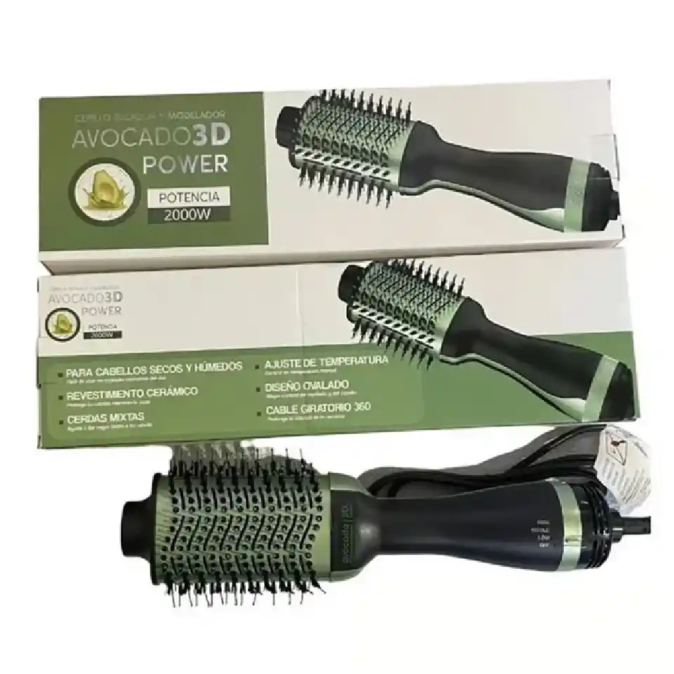Cepillo Secador con Infusión de Aguacate – Nutre, alisa y da brillo Dile adiós al frizz y al cabello maltratado. Este cepillo secador con aceite de aguacate nutre tu cabello mientras lo seca y alisa. Ideal para un peinado rápido, con volumen y acabado de salón en casa. Características: Recubrimiento con aceite de aguacate para más suavidad y nutrición Secado rápido con 3 niveles de temperatura Diseño ovalado: da volumen en la raíz y alisa las puntas Tecnología iónica: menos frizz, más brillo Beneficios: Cabello más suave y saludable 3 funciones en 1: seca, alisa y da volumen Ideal para todo tipo de cabello Tu peinado perfecto en minutos.