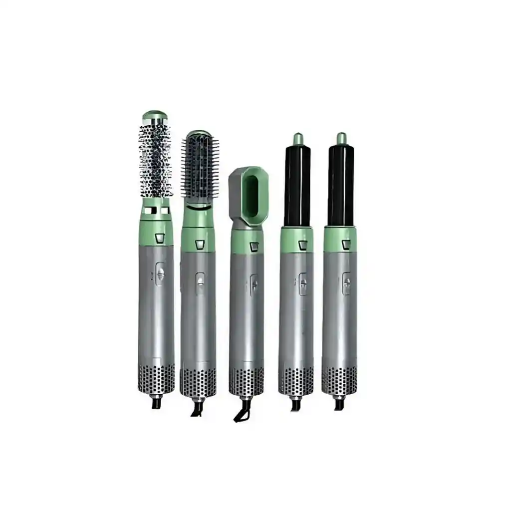 El juego de herramientas de peinado con secador de pelo 5 en 1 combina un cepillo secador, rizador, plancha de pelo y cepillo, ofreciendo una solución completa para todas tus necesidades de peinado. Equipado con tecnología iónica avanzada y revestimiento cerámico, proporciona un cabello suave, brillante y sin frizz, mientras reduce la electricidad estática y los enredos. Con tres configuraciones de calor ajustables, permite alisar, rizar, dar volumen y masajear el cuero cabelludo fácilmente. Su diseño ligero y portátil, junto con su facilidad de uso, lo hace ideal para viajar y apto para cualquier tipo de cabello. Ficha Técnica: Material: ABS + Aleación de aluminio ecológica + Ceramica Tamaño del host: 23,5 * 7,5 * 4,5 cm Función del producto: Secado / Liso / Rizado / Esponjoso Engranajes de control de temperatura: 1.a marcha 60-63 grados; 2da marcha 96-98 grados; 3ra marcha 136-140 grados Frecuencia nominal: 50-60 HZ Voltaje: 110 V Potencia: 1000 W Términos de Garantía: Para defectos de fábrica o retractos: Por favor revise el producto apenas lo reciba y antes de usarlo. No aplican ley de retracto o defectos de fábrica luego de usar el producto. Se manejan máximo 5 días para reportar defectos de fábrica (por ejemplo, producto funciona mal, piezas faltantes, rotas, etc). Para hacer efectiva la devolución el producto debe devolverse con el empaque original, el cual debe estar en buen estado, incluir todos los documentos y las partes completas y sin daños.