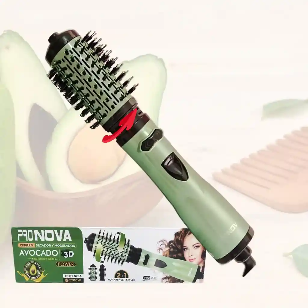Tecnología: Incorpora la tecnología Avocado 3D, que utiliza ION PLUS para ayudar a restaurar la estructura molecular del cabello, aportando brillo, flexibilidad y reduciendo el frizz. Funcionalidad: Permite secar, alisar y dar volumen al cabello al mismo tiempo, siendo apto tanto para cabello húmedo como seco. Diseño: Cuenta con cerdas que desenredan y un diseño ovalado ergonómico que facilita el peinado. Protección: Su revestimiento de cerámica protege el cabello del calor excesivo. Potencia: Según la caja del producto, tiene una potencia de 2200W.