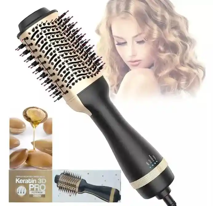 Cepillo Secador Keratin 3D Pro 1. Este cepillo secador de pelo puede hacer que su cabello sea brillante, sin encrespamiento y especialmente adecuado para el cuero cabelludo. Puede ayudar a hacer el peinado perfecto fácilmente. 2. Calentamiento rápido, ahorro de tiempo. 3. Peine de aire caliente todo en uno, secador de pelo, peine recto, peine, tenazas para rizar, masajeador. Siéntete libre de usarlos para rizar o alisar tu cabello. 4. Disipe el calor de manera uniforme para proteger el cabello del peinado y reducir el daño. La película saturará el flujo de aire. Por estático 5. Los bordes ovalados pueden hacer que su cabello se vea más esponjoso y con una forma única, bordes rectos curvos, bordes redondos suaves y puntas onduladas. Fácil de cuidar. 6. El cepillo es ligero y muy fácil de usar. Ideal para familias, viajes, vacaciones o incluso oficina. No te pierdas la oportunidad de obtener esta magnifica herramienta. Cepillo Secador que te permite lograr un peinado perfecto y duradero, que puede Suavizar su cabello y darle forma y añade volumen