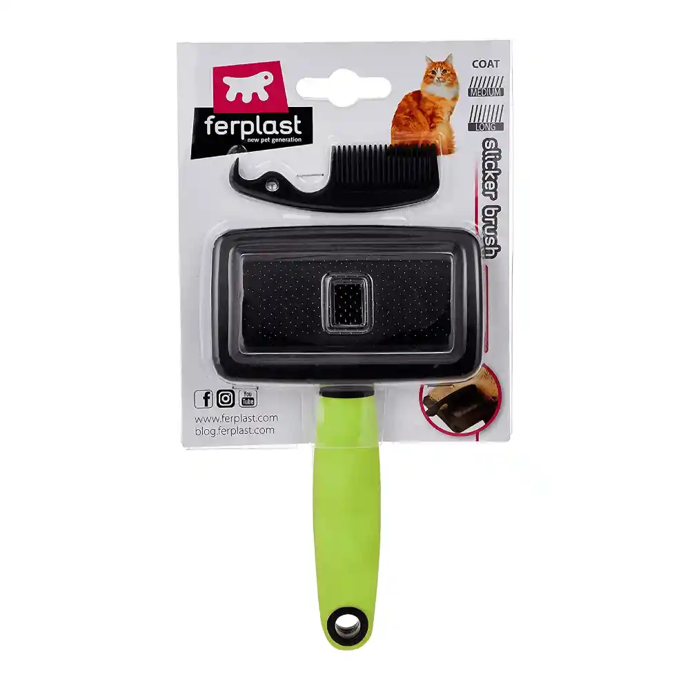 Eliminar el Pelo Muerto de la Capa Interna de tu Gato Siempre Será un Problema Gracias a Este Útil Cepillo Más Pulido. Recomendado Para Animales de Pelo Mediano y Largo Tiene un Mango Ergonómico Para un Agarre Seguro. Se Suministra Completo Con un Pequeño Peine Útil Para Eliminar el Pelo Muerto Del Cepillo.