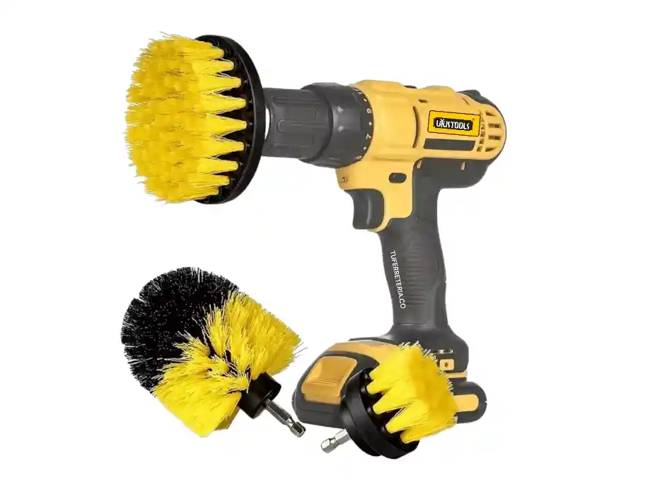 Juego de 3 cepillos multiusos para taladro. CARACTERÍSTICAS: • Cerdas de polipropileno. • Espigo de cambio rápido de 1/4" • Para limpieza profunda de baños, alfombra, cocinas, rines, parrillas, tapicería y vehículos. • Compatibles con cualquier taladro. • Ideal para esquinas, contornos, detalles y superficies planas. • Empaque individual Blíster. • Marca UYUSTOOLS