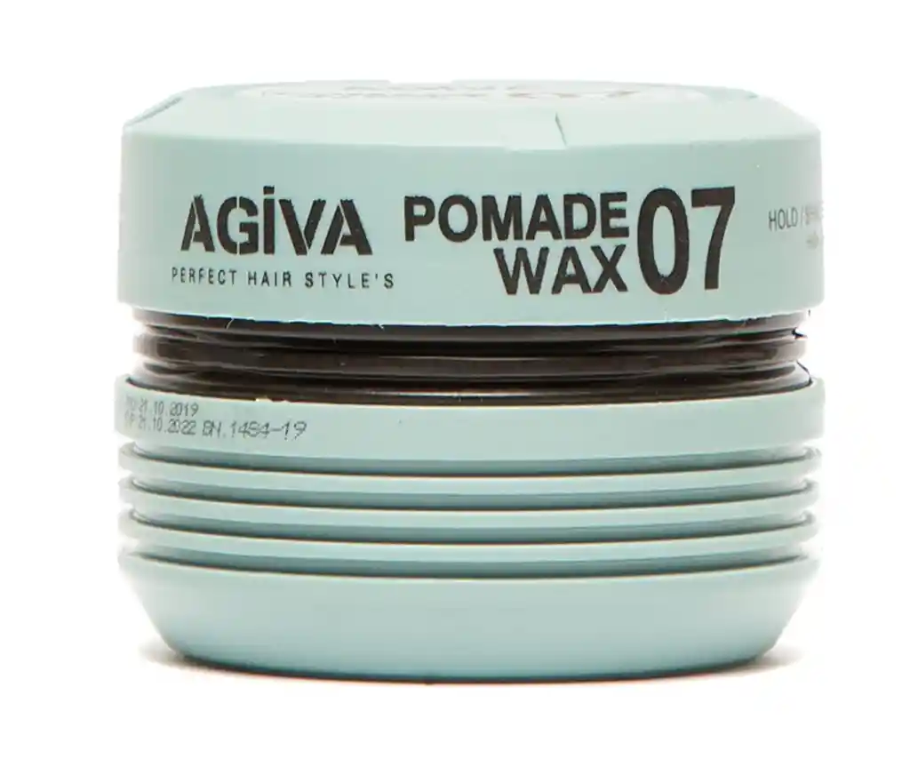 CERA AGIVA HAIR STYLING AQUA WAX POMADE WAX O7 HOLD SHINE FINISH HIGH CONTROL 175 ML : pomada a base de agua para peinar el cabello, diseñada para dar fijación fuerte, hidratación, brillo duradero y control para estilos definidos, funcionando bien en pelo seco para más fijación y en húmedo para más brillo, siendo fácil de lavar y apta para todo tipo de cabello, incluso seco, y formulada sin gluten y de forma vegana. Características Principales: Marca: Agiva. Tipo: Cera para Peinar (Pomade). Efecto: Brillo y fijación fuerte, con acabado húmedo o brillante según la aplicación. Fijación: Fuerte y duradera, permite remodelar el peinado. Aplicación: Sobre cabello húmedo para más brillo o seco para mayor fijación. Beneficios: Hidrata, protege de la resequedad, no deja residuos grasos, se elimina fácilmente con agua. Fórmula: Vegana, libre de gluten, dermatológicamente testada. Formato: Frasco de 175 ml. Cómo usarla: Toma una pequeña cantidad de cera en tus manos. Frótala entre las palmas para distribuirla. Aplícala sobre el cabello húmedo o seco, modelando con los dedos para crear el estilo deseado. Lava el cabello para eliminarla fácilmente.