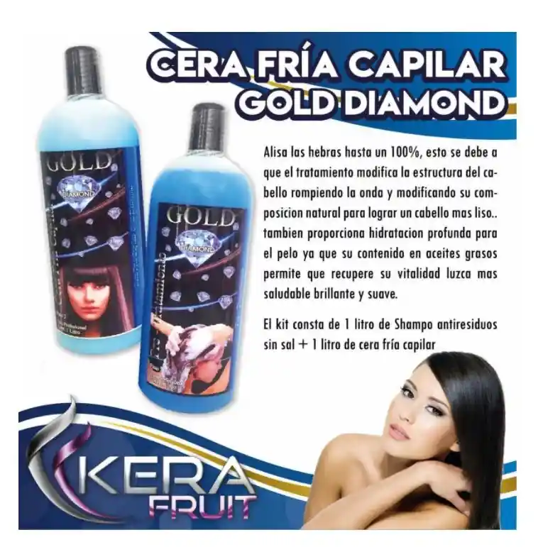 Cera Fría Capilar Para Cabellos Crespos y Rebeldes (Sirve Para Cabellos Ondulados Con Mucho Frizz) Totalmente Sellada y Garantizada de litro con su shampo antiresiduos Alisa las ebras hasta un 100%, esto se debe a que el tratamiento modifica la estructura del cabello rompiendo la onda y modificando su composicion natural para lograr un cabello mas liso.. Tambien proporciona hidratacion profunda para el pelo ya que su contenido en aceites grasos permite que recupere su vitalidad luzca mas saludable brillante y suave.. Especial Para: • Alisar • Dar Brillo • Eliminar Frizz • Bajar las ondas • Regenerar • Restaurar • Nutrir