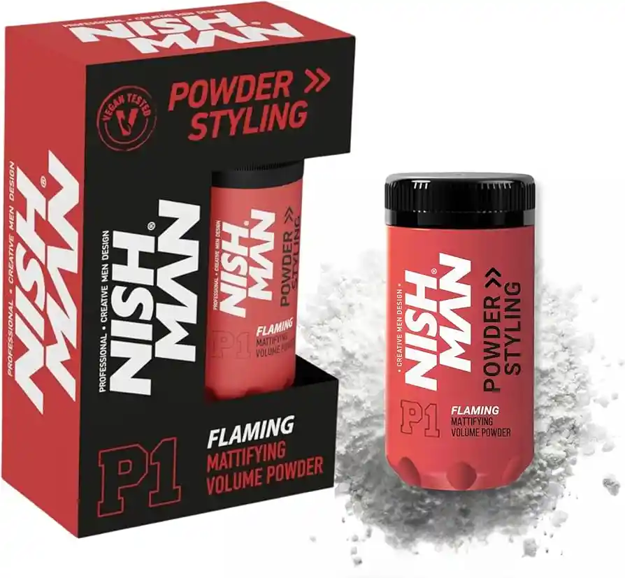 CERA NISHMAN EN POLVO POWDER STYLING P1 20G : da volumen, textura y fijación mate de larga duración al cabello, ideal para peinados modernos y naturales sin sensación grasa. Su fórmula en polvo fino se transforma en una cera ligera al contacto, permitiendo peinar, despeinar y levantar raíces sin residuos blancos. Características y Usos Principales: * Volumen y Textura: Levanta el cabello desde la raíz y añade textura instantánea. * Acabado Mate: Proporciona un aspecto seco, natural y libre de brillo graso. * Fijación Flexible: Ofrece una sujeción duradera, permitiendo moldear el estilo durante el día. * Sin Residuos: No deja marcas blancas ni residuos pesados. * Versatilidad: Ideal para todo tipo de cabello, especialmente para texturizar y dar volumen a cabellos finos o sin forma. * Uso en Seco/Húmedo: Se puede aplicar sobre el cabello seco para un acabado mate o húmedo para mayor control. Modo de Uso: Agite ligeramente la botella antes de usar. Espolvoree una pequeña cantidad sobre la palma de la mano o directamente sobre el cabello seco y moldee con los dedos o peine.