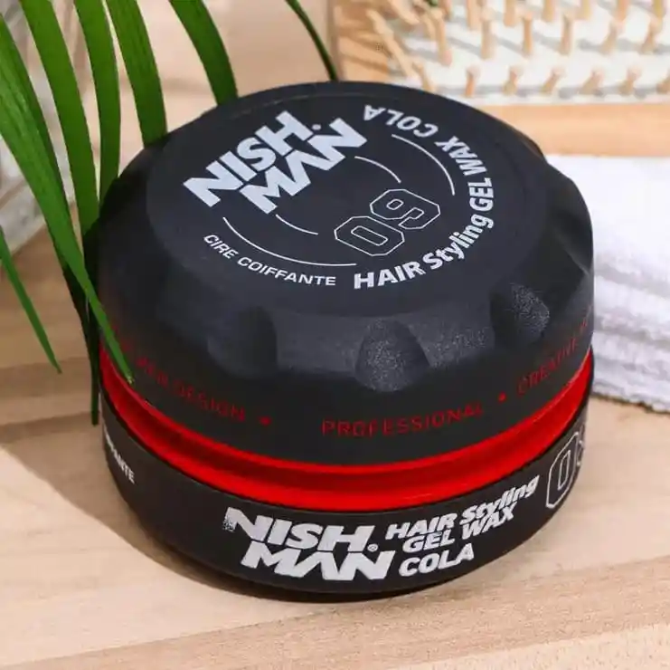 CERA NISHMAN HAIR STYLING GEL WAX COLA 09 150 ML : La Cera Nishman 09 Negra es una cera de peinado a base de agua que te ayuda a moldear tu cabello sin dejar residuos. Proporciona un brillo duradero y mantiene la fijación durante todo el día. Ideal para añadir volumen y lograr una sujeción ultra alta, incluso en cabello grueso, esponjoso o ondulado. Su fórmula de alto rendimiento garantiza que mantengas el control de tu peinado, sin importar las condiciones. 💈 Modo de uso : Aplica una pequeña cantidad de cera en tus manos, frota hasta calentarla, y distribuye uniformemente sobre el cabello seco o semi-húmedo. Peina como desees para lograr el estilo perfecto.