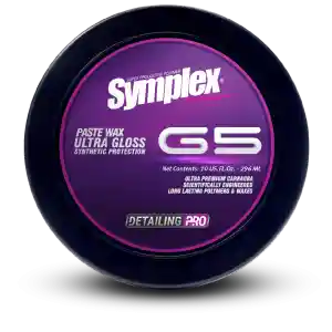 La cera Symplex G5 en pasta da un ultrabrillo con super protección gracias a su composición hibrida de componentes sintéticos y cera carnauba.Este producto prolonga el brillo y protege contra polución y rayos UV, con larga duración. Sella y protege tu pintura dando un brillo increíble.Ideal para proteger la pintura de tu vehículo, darle apariencia nueva con productos premium de acabados profesionales, aplícalo fácilmente con los aplicadores originales de Symplex y un paño de microfibra. Resultados instantáneos.Materiales compatibles: Piezas pintadas, vidrio, cromo acero, etc.También puede usarse sobre vidrio, cromo y acero inoxidable, su exclusiva formula en pasta lo hace muy fácil de aplicar. Ultra Rendimiento.Composición: Polimeros sintéticos y ceras.