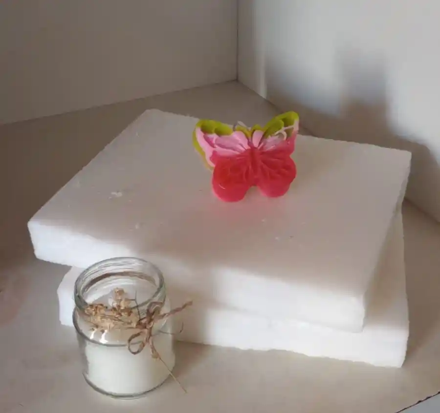 CERA COMBINADA CON PARAFINA Y CERA VEGETAL ALTO PUNTO DE FUSIÓN Se puede usar en molde o recipiente Crea tus velas personalizadas para uso personal, regalos o emprendimiento